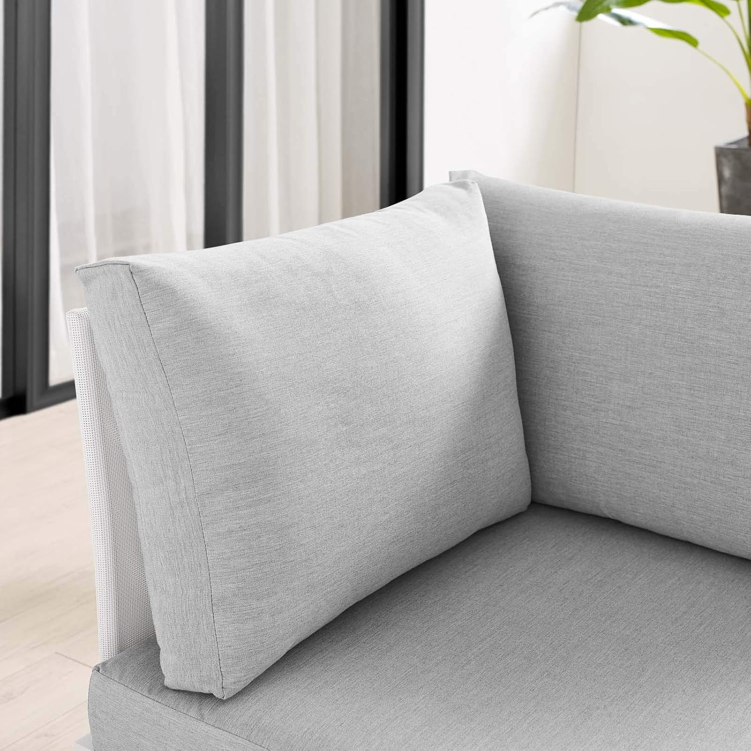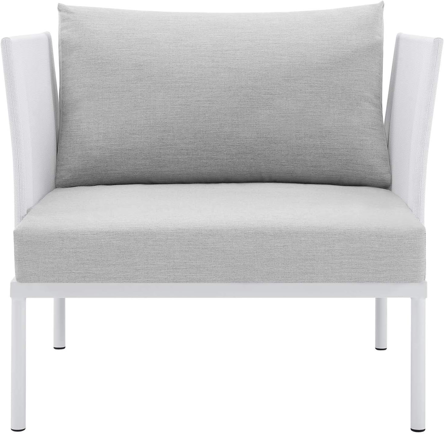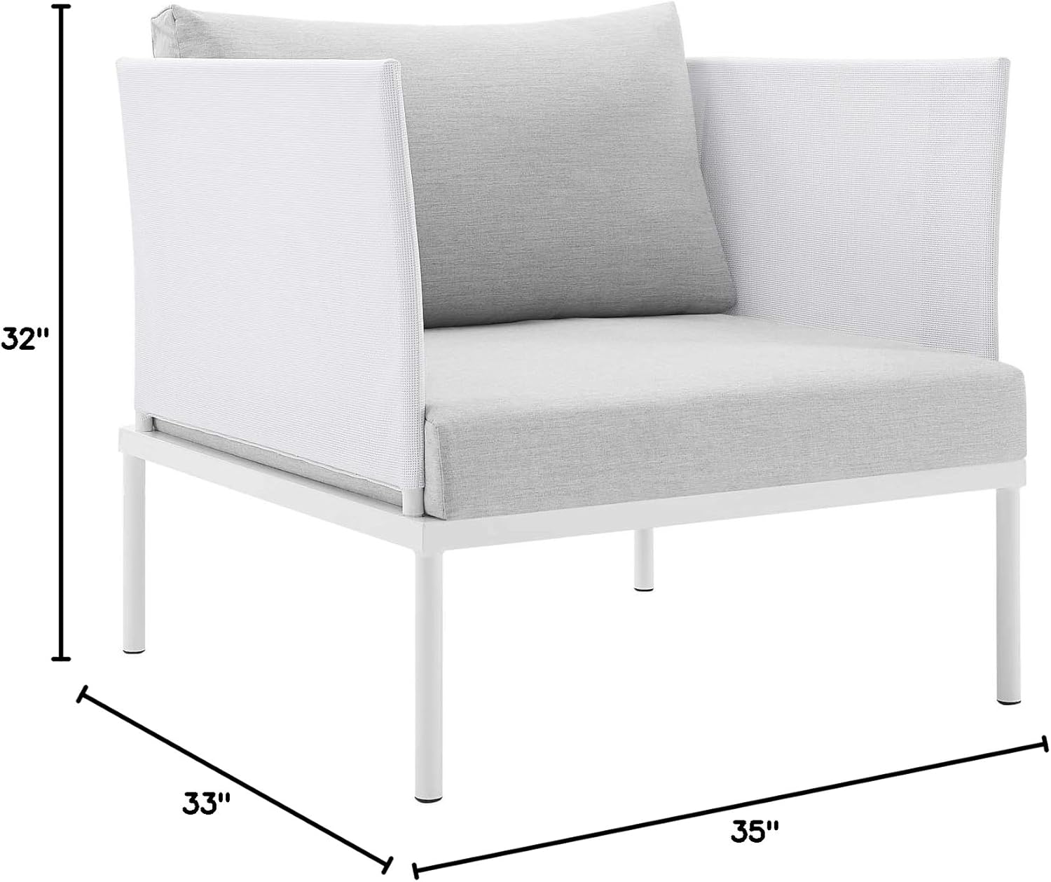 Engage life with Harmony Outdoor Patio Corner Chair. Enjoy casual conversation under the open sky with an all-weather waterproof outdoor sofa chair from a versatile furniture set that delivers an exceptional outdoor porch, patio, balcony or garden experience. An exceptional modern outdoor furniture set that exceeds expectations, Harmony Patio Corner Chair comes with soft and durable polyester Textiline® panels, square powder coated aluminum bases, Sunbrella® cushions, and non-marking foot caps. An outside sectional corner chair that arranges according to the spontaneous needs of your guests, set your sights on open and inspired moments with the Harmony Outdoor Patio Collection. Set Includes: One - Harmony Outdoor Patio Corner Chair Product Dimensions: Overall Product Dimensions: 33"L x 33"W x 32"H Seat Dimensions: 30.5"L x 30.5"W x 15.5"H